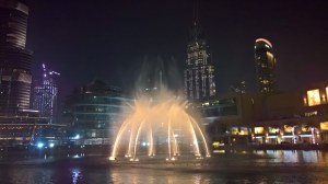 Výtahem jsme byli nahoře za chvíli a naskytly se nám krásné výhledy na osvětlené město. Mrakodrapy, které se vám zdají ze země vysoké jsou zde daleko pod vámi. Poté jsme zamířili zpátky ke zpívající fontáně, která hraje každých 30 minut od 18:00 do 20:00 (o víkendech až do 21:00)