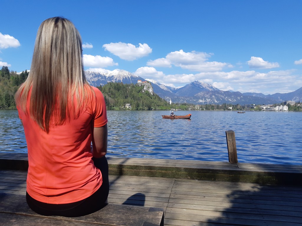 Po příjezdu jsme se ubytovali v malém a utulném lokálním penzionu a vyrazili do města. Jelikož jsme nevěděla, jestli procházka kolem jezera bude spíše rekreační nebo turistická, oblékla jsem se do sportovního. Nyní vám již můžu poradit, že se budete možná cítit lépe v normálním oblečení než ve sportovním. Všichni se procházeli po městě a kolem jezera Bled v normálním oblečení. Kolem jezera vede pěkná asfaltová cesta a část z ní slouží jako promenáda, takže spíše než pohorky a šortky jsme viděli podpatky a šaty.