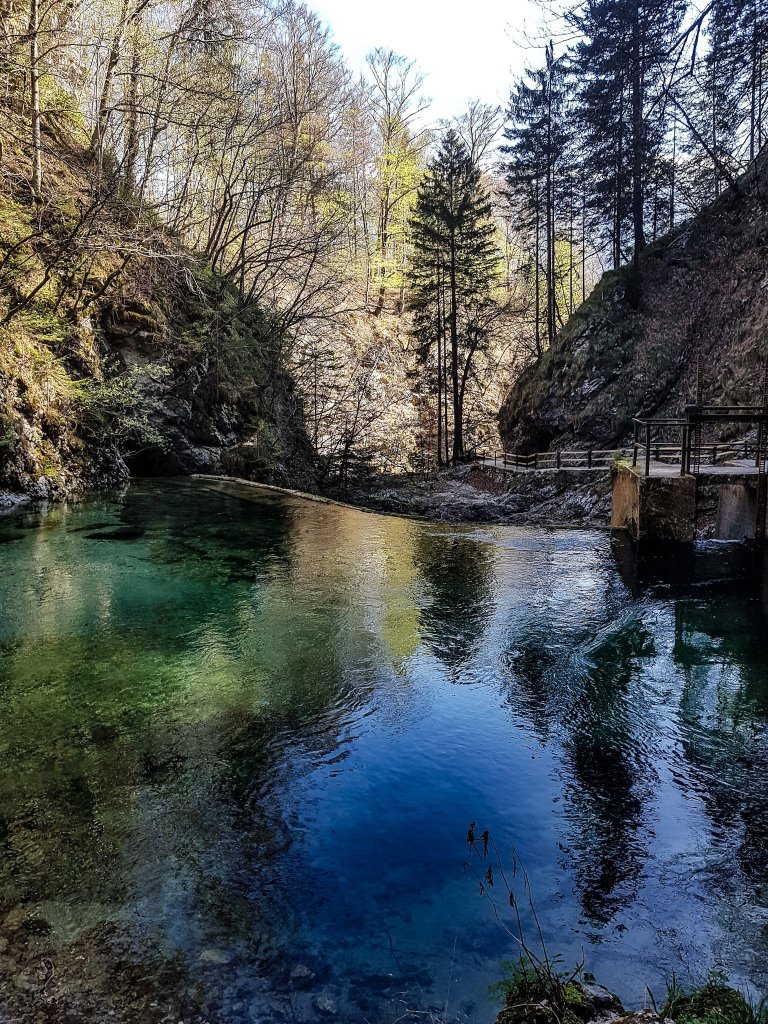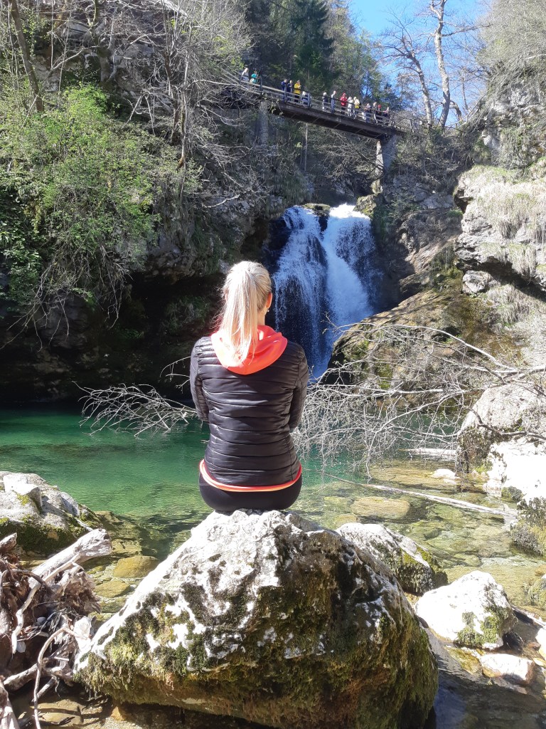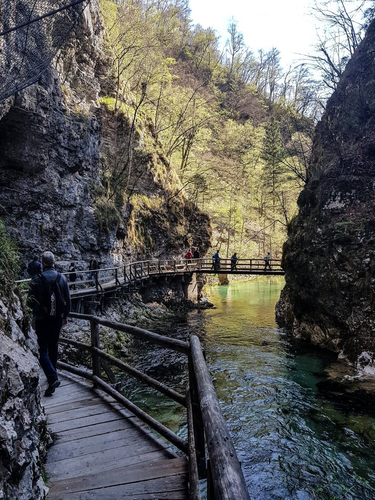 Ráno u snídaně v podobě bohatě obložených mís z lokálních dobrot jsme plánovali, jak strávíme sobotu. V plánu byla procházka kolem Bohinjského jezera a večer příjezd do Lublaně, kde jsme měli na další dvě noci objednané apartmány. Taťka si ale vzpomněl na doporučení známých, abychom se určitě vydali i na soutěsku Vintgar. Začali jsme googlovat a zjistili jsme, že máme dvojnásobné štěstí. Soutěska je vzdálená od Bledu jen 10 minut autem, ale hlavně v ten den ji poprvé letos otevřeli. Před desátou jsme již stáli u pokladny, každý zaplatil 10 € a vešli jsme na úzkou cestičku, která je dlouhá 1,5 km a vede k vodopádu Šum. Trasa není dlouhá, ale kvůli velkému počtu lidí a spoustě míst, kde se musíte vyhýbat, protože od vodopádu vede zpátky ta stejná cesta. Nutno dodat, že se budete zdržovat sami, protože pokud budete jako my, budete se kochat vodopády, čistou vodou, soutěskou a všechno to budete dokumentovat. Když jsme se vrátili k pokladně kolem dvanácté hodiny, vytvořila se u ní docela dlouhá fronta. Takže doporučení za nás, raději si přivstaňte a buďte mezi prvními. V letní sezóně je otevřeno od 7:00. 🙂