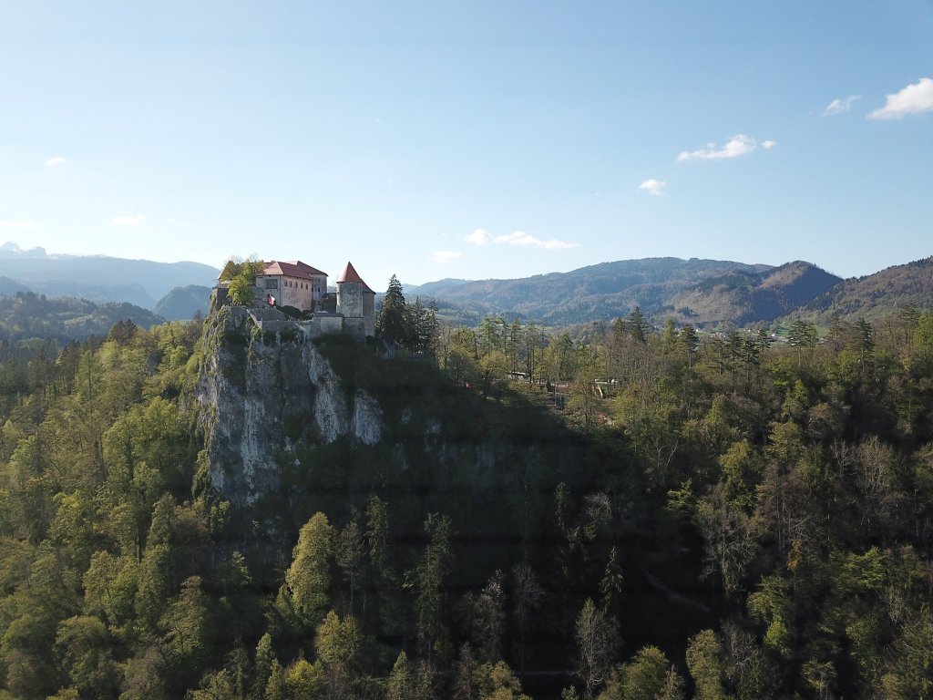Po návratu zpátky do města jsme zamířili na pozdnější oběd do restaurace Vila Preseren na břehu jezera. Posilnění jídlem, lokálním vínem a pivem jsme začali stoupat po schodech na Bledský hrad. Nešlo nám ani tak o hrad jako o výhled z hradu, který se tyčí nad městem. Nahoře jsme ale zjistili, že se nedostaneme ani na nádvoří nebo na jiné místo, odkud byste se mohli pokochat výhledem na město a jezero z výšky, pokud si nezaplatíme vstup. A vzhledem k tomu, že nikdo nestál o prohlídku a hlavně čas se krátil a my jsme chtěli ještě obejít jezero, otočili jsme se a vydali se po schodech zpátky k jezeru.