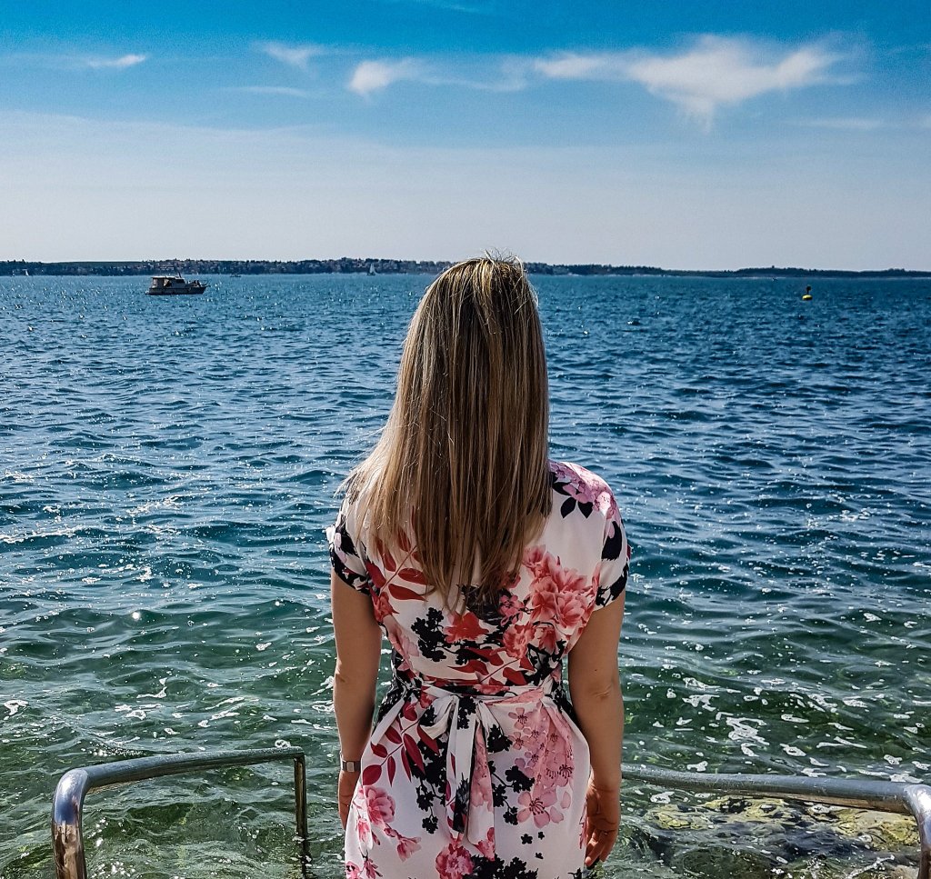 Cesta kolem jezera podle Google maps měla trvat asi 2 hodiny. Pokud moc nechodíte nebo půjdete i s dětmi nebo staršími lidmi, ty dvě hodinky to asi zabere. My jsme šli asi hodinku svižnou chůzí plus k tomu nějakých 15 minut na kochání. V polovině trasy narazíte na kemp, kde doporučujeme na chvilku posedět, občerstvit se a pokochat se pohledem na ostrov s kostelíkem, hrad a město v pozadí.