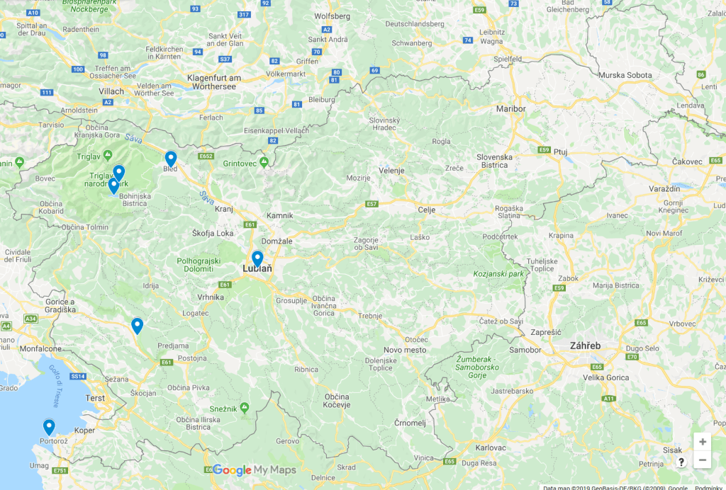 Jak si můžete všimnout na mapě níže, za 4 dny jsme toho sice projeli a stihli hodně, ale ne zdaleka všechno, co Slovinsko nabízí. Celá východní část zůstala nedotčena. Pokud tedy strávíte ve Slovinsku delší čas než my, zkuste navštívit třeba ještě některou z místních turisty oblíbených jeskyní, Maribor, Velikou Planinu, Predjamsky hrad, termální lázně nebo Zlatou radgonskou peninu, kde Slovinci vyrábí své šampaňské.