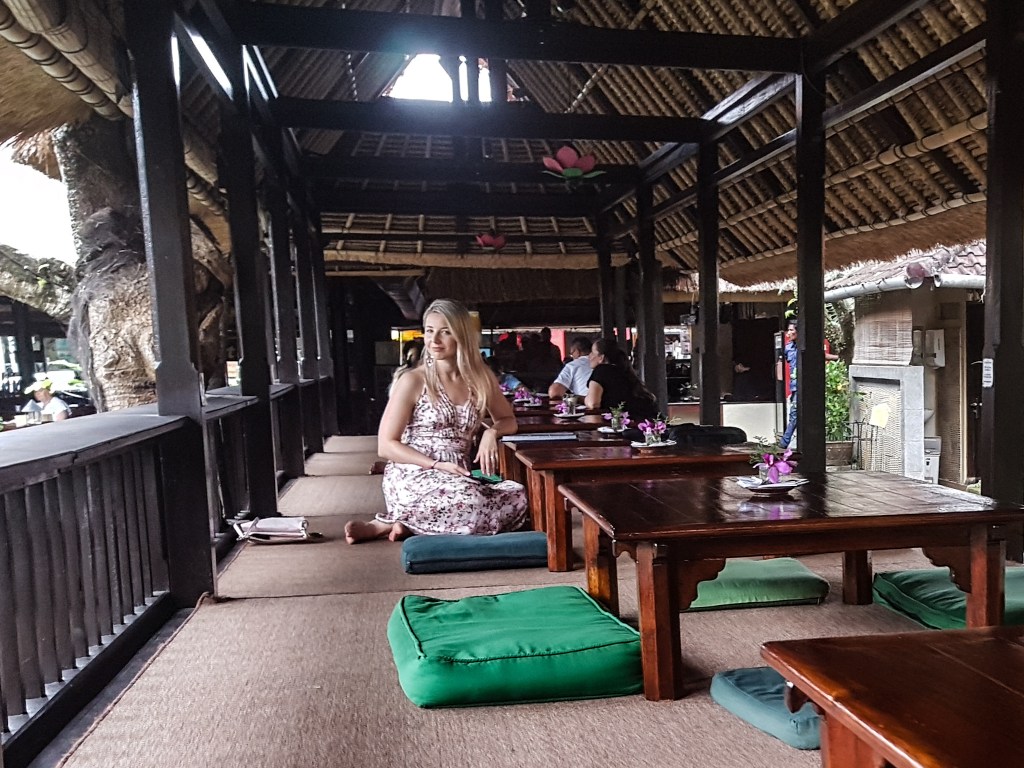 - Navštívili sme Lotus Cafe a chrám Saraswati (navštívte náš Instagram). Príjemné posedenie pri jazierku s lotosovými kvetmi a príjemnou atmosférou. Sedeli sme si na poduške na zemi a vychutnávali zelený čaj, pri pohľade na krásny chrám, uprosterd mesta Ubud. Hoci je mesto veľmi hlučné, tak v Lotus Cafe sa pred rušnou hlavnou ulicou mesta elegantne schováte.