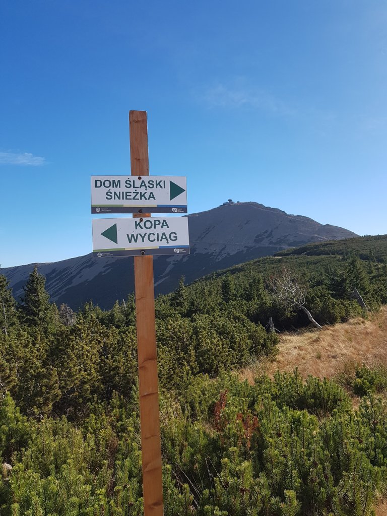 Z města Karpacz, kde jsme byli ubytování vedou na Sněžku hned čtyři turistické trasy. Jelikož jsme měli za sebou 20 kilometrový výšlap na Labskou boudu z předchozího dne, napadlo nás, že si výšlap alespoň trochu zkrátíme a svezeme se lanovkou z Karpacze do Kopy a pak už dojdeme těch 2,3 km pěšky.